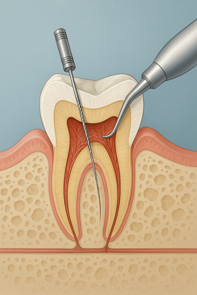 - Maschinelle Aufbereitung: Effektive Reinigung der Wurzelkanäle mit modernen Instrumenten.